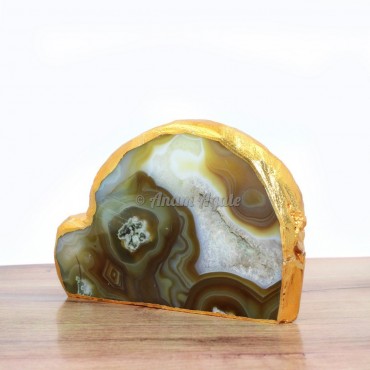 Indian Tiger Eye Round Shaped Electroplated Coasters