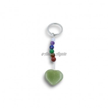 Green Aventurine Heart Shape with Crystal Beads Keychains Charms