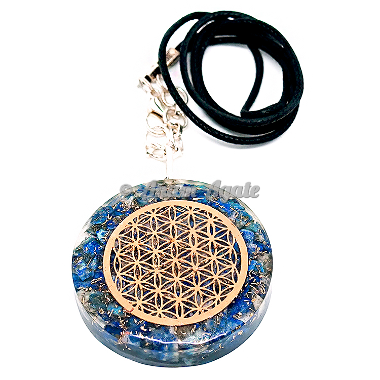 Lapis Lazuli Flower of Life Orgonite Pendant EMF Protection