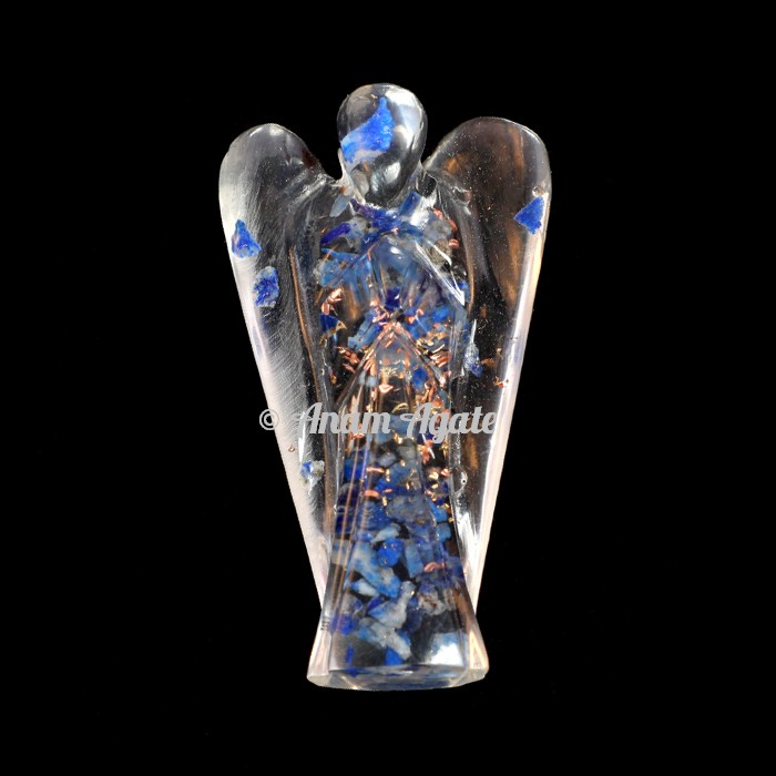 A beautiful and natural Lapis Lazuli gemstone chips hand-carved angel embedded in the orgonite resin matrix. Lapis Lazuli is good for balancing the Throat Chakra. Lapis encourages clear expression when sharing information with others, including easier communication of anger. Lapis Lazuli helps you to find your voice in any situation and to help you to speak up for yourself. The beautiful shape and wonderful vibration of the crystal make these powerful energy tools.