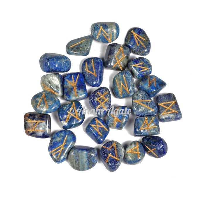 A stunning rune set carved on tiles of Lapis Lazuli. Each set has a variety of interesting patterns and mixed blue shades. It may be used for divination, magick, and meditation. For those who are unfamiliar with the meanings of the runes. Its deep, celestial blue remains the symbol of royalty and honor, gods and power, spirit and vision. Order online now.