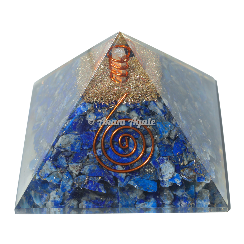 Here is the wide range of Lapiz Lazuli Orgonite Pyramid. Lapiz Lazuli Orgonite Pyramid supports mindfulness, permits self-articulation and uncovers internal truth, giving characteristics of trustworthiness, empathy and profound quality to the personality. This pyramid is available in huge collection and also in affordable price. Order online for Lapiz Lazuli Orgonite Pyramid today.