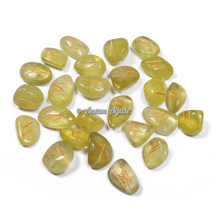 Here is the wide range of Lemon Quartz Rune Set at affordable price. This lemon citrine gemstone is eye-clean under close inspection with some very faint natural silky inclusions visible only with magnification and bright illumination. This gem has very beautiful fine golden yellow color. Runes are the letters in a set of related alphabets known as runic alphabets, which were used to write various Germanic languages before the adoption of the Latin alphabet and for specialised purposes thereafter. Rune stones, they say, are a modern, New Age invention. Order online today at Anam Agate.