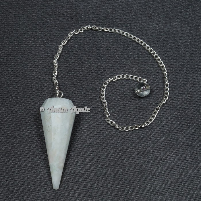 Place your order online for Moonstone 12 Faceted Pendulums at Agate export. Moonstone Pendulum enhaces a one`s energy stimulating psychic perception, vision and dream work. It magnifies one`s emotions and activates the kundalini energy in men and women. Pendulums are often used as tools for spiritual healing and inner growth. Pendulum will swing back and forth or in a circular motion. A pendulum works by converting energy back and forth, a bit like a rollercoaster ride. It repeatedly switches its energy back and forth between potential and kinetic. Buy this Moonstone 12 Faceted Pendulums at wholesale price.