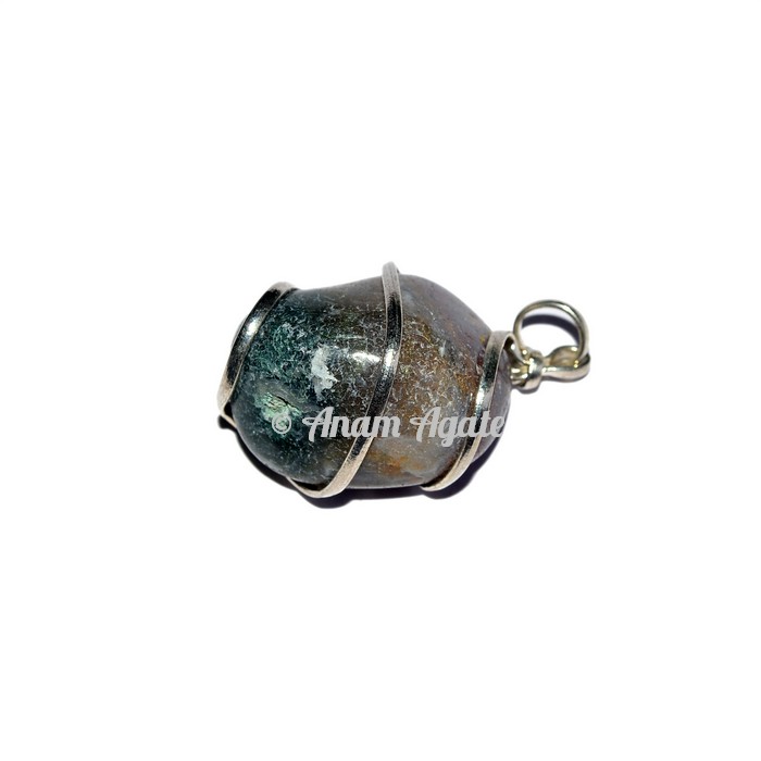 Purchase online Moss Agate Tumbled Pendants at lowest price.The stone is associated with the Heart Chakra, helping to remove stress and tension. It is a wonderful cleansing crystal, removing toxins from the body and circulatory systems. A stone of new beginnings, Moss Agate promotes release from old habits. Moss Agate can be used to comfort and soothe emotional wounds, improve self-esteem and release fears.