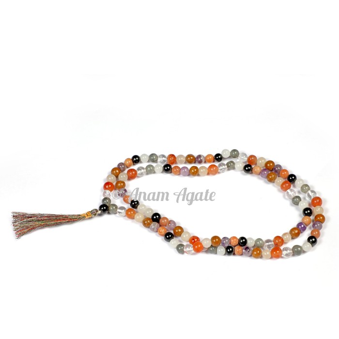 Navratna Japmala is highly effective in warding off the malefic effects of all the nine planets (Navgraha). It is Combination of Ruby, Pearl, Coral, Emerald, Golden Topaz, Sphatik, Blue Sapphire, Gomed/Hessonite, & Cat`s Eye. Sometimes more than one planets are adversely placed in ones horoscope or at times the correctness of the horoscope is doubtful due to non-availability of authentic data. Under such conditions, this Mala is very useful as all the stones required to pacify the malefic effects of all the nine planets are studded in this single Mala itself.