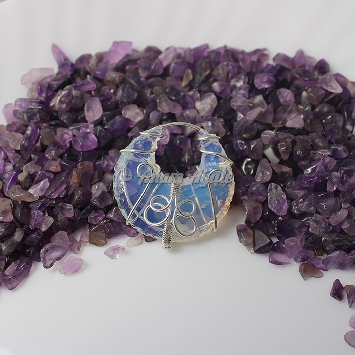 Opalite Wire Wrap Tumbled Pendant