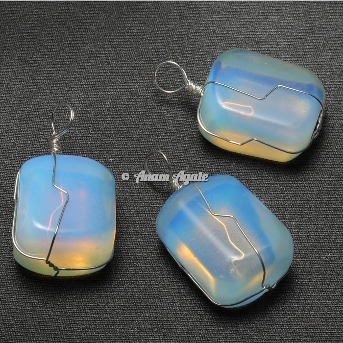 Shop online for Opalite Wire Wrap Tumbled Pendant at reasonable prices. Opalite improves communication on all levels, especially the spiritual. It removes energy blockages of the chakras and meridians. Opalite helps by assisting during transitions of all kinds. It engenders persistence and gives us strength in verbalising our hidden feelings. Opalite is great to be used for meditational purposes, as it helps to remove energy blockages and align your chakras. Order online now.