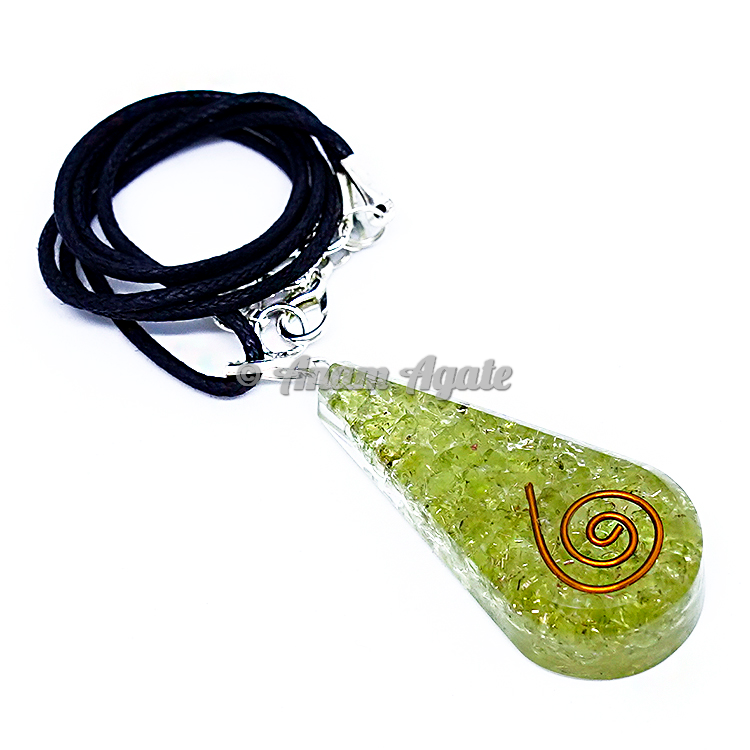 Peridot Orgonite Drop Shape Pendant EMF Protection