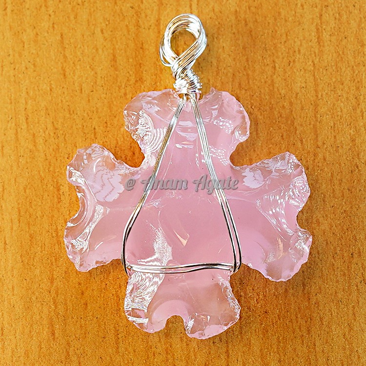 Best collection of Pink Glass Luck Four Leaf Clover Wire Wrapped Pendants is here only at Anam Agate. These pink gemstones are namely Rose Quartz, Star Ruby, Rhodonite, Rubellite, Pink Tourmaline, Pink Opal, Pink Fluorite, Kunzite, Morganite, Star Garnet, and Pink Spinel. Pink crystal energy has a tendency to feel like a warm, gentle, loving hug for your heart. Calming, compassion-promoting, and very heart-healing, pink crystals are the perfect choice for adding more love and kindness into your life. According to Irish tradition, those who find a four-leaf clover are destined for good luck, as each leaf in the clover symbolizes good omens for faith, hope, love, and luck for the finder. A lesser-known fact about four-leaf clovers is that they aren`t the luckiest symbol after all. Pendant, in jewelry, ornament suspended from a bracelet, earring, or, especially, a necklace. Pendants are derived from the primitive practice of wearing amulets or talismans around the neck. The practice dates from the Stone Age, when pendants consisted of such objects as teeth, stones, and shells. A gemstone worn as a pendant always gives better result than a ring.