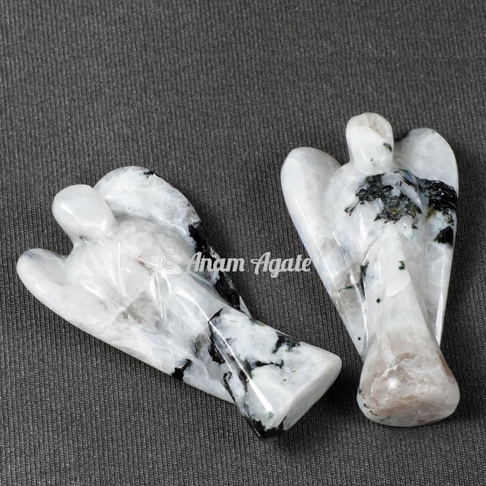 Browse the unique collection of Rainbow Moonstone Angels of 2 Inches at low prices. Rainbow Moonstone acts as a prism, diffusing energy throughout the aura. It provides psychic protection, clearing the mind and senses, and aids in lucid dreaming and calm sleep. It deflects negativity and eases emotional trauma. Aligned with the Goddess, Rainbow Moonstones connect with the energies and spirits of Nature, from plant devas to galactic consciousness. Order online now.