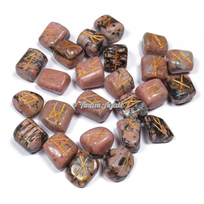 Get the best collection of Rhodonite Rune Set at Wholesale Price. Rhodonite is a stone of compassion, an emotional balancer that clears away emotional wounds and scars from the past, and that nurtures love. It stimulates, clears and activates the heart. Rhodonite grounds energy, balances yin-yang, and aids in achieving one`s highest potential. It heals emotional shock and panic. Runes are the letters in a set of related alphabets known as runic alphabets, which were used to write various Germanic languages before the adoption of the Latin alphabet and for specialised purposes thereafter. Place the order as soon as possible.
