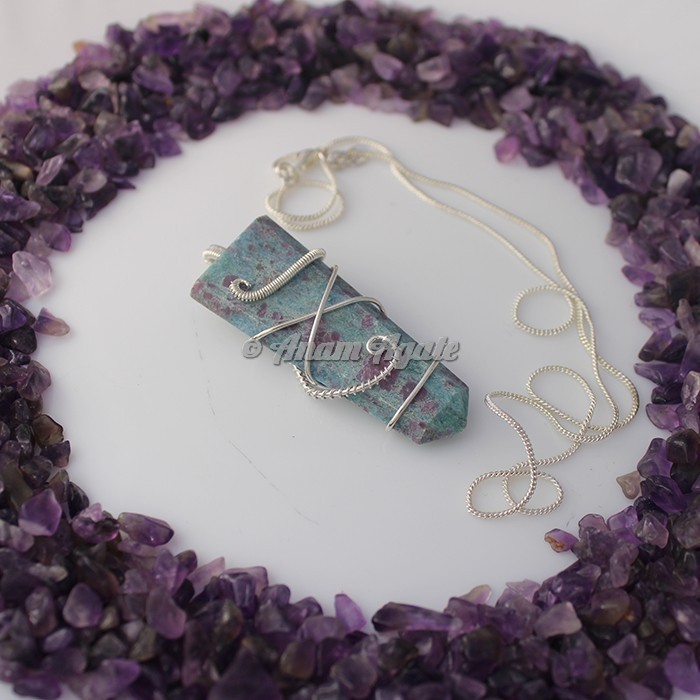 Ruby Zoisite Wire Wrap Flat Gemstone Pendant
