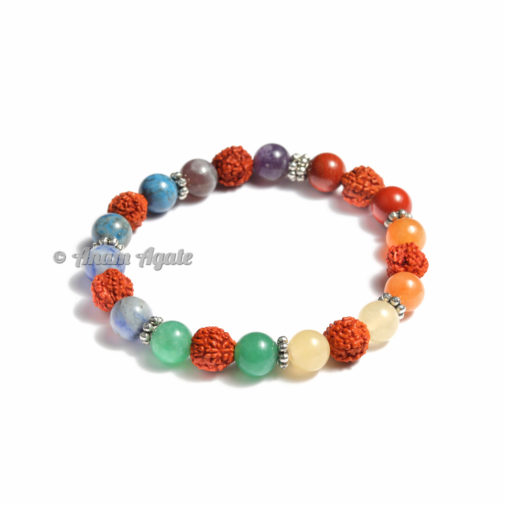 Best collection of Rudraksha With Seven Chakra Bracelets is here at Anam Agate. The Rudraksha bead acts like a protective guard that safeguards its wearer from negative energies. If you are a person who is always on the go, this bead is ideal for you. The Rudraksha bead also aids in identifying if the food or water that we are about to consume is pure or not. When 7 Chakra Bracelets are worn, it helps to keep the seven Chakras at their right energy levels causing the wearer to feel more balanced. The task becomes attainable as it helps to focus on keeping the chakras open and replace negative thoughts with an optimistic outlook towards life.