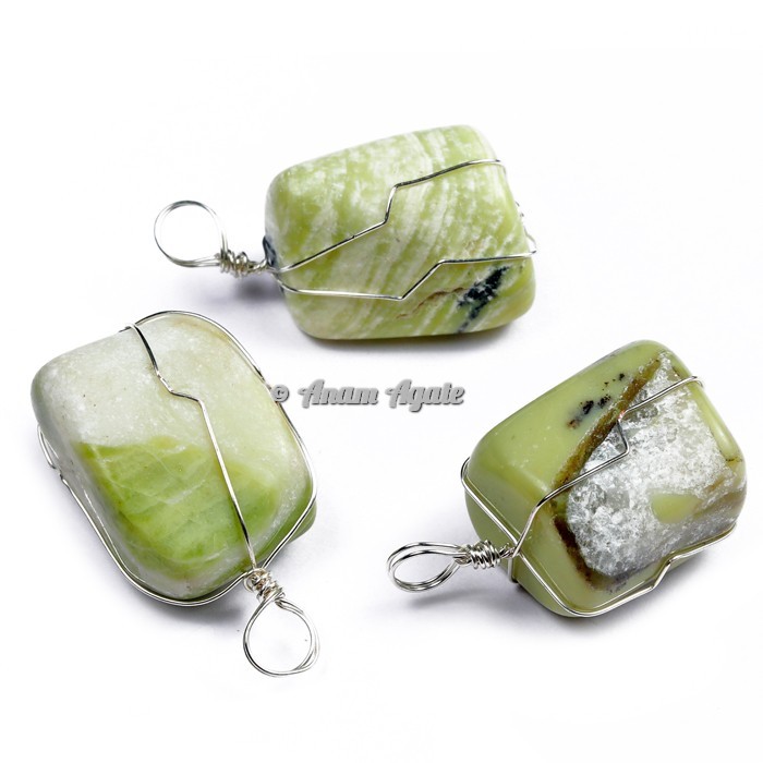 Get the Serpentine Wire Wrap Tumbled Pendants at wholesale prices now. Serpentine assists the retrieval of wisdom, helping to regain memory of past lives. It clears the chakras and stimulates the crown chakra, opening psychic abilities. Serpentine assists the conscious direction of healing energy toward problem areas. For any special order contact us directly.