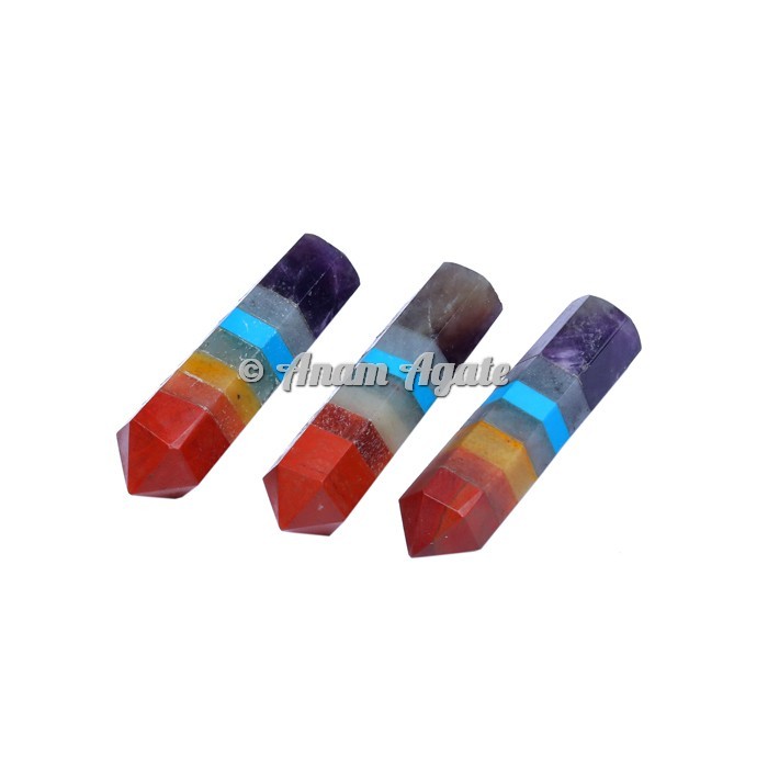 Anam Agate is offering Seven Chakra Bonded Stone Points at low price. It refers to wheels of energy throughout the body. There are seven main chakras, which align the spine, starting from the base of the spine through to the crown of the head. The seven chakra are the Root Chakra, Sacral Chakra, Solar Plexus Chakra, Heart Chakra, Throat Chakra, Third Eye Chakra and the Crown Chakra. Bring yourself to a happy place. Visualize a heart blessing or a flower opening for each of your chakras. When done with intention, deep and conscious breaths can restore your chakras as well. Each inhales directs energy to your chakra, while each exhale allows awareness to settle into your chakras.