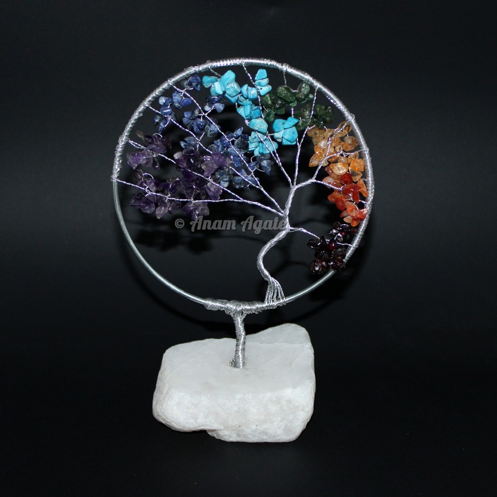Seven Chakra Gemstone Tree of Life with White Quartz Stone – Balance, Healing & Positivity
