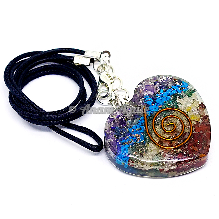 Seven Chakra Orgonite Heart Pendant EMF Protection