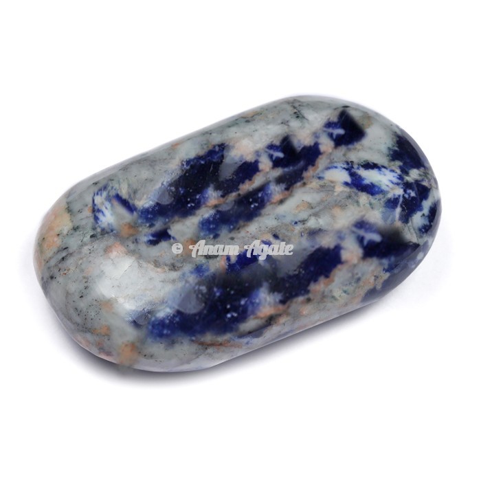 Here is the wide range Sodalite Palm Stone at affordable price. Sodalite brings emotional balance and calms panic attacks. It enhances self-esteem, self-acceptance and self-trust. Sodalite balances the metabolism, boosts the immune system and overcomes calcium deficiencies. It encourages rational thought, objectivity, truth and intuition, along with verbalisation of feelings. Palm stones are polished oval stones that can be used for crystal healing, meditation and many other esoteric healing practices. The reason that palm stones are called `palm stones` is very simple: they fit perfectly into the palm of your hand. Order online as soon as possible.