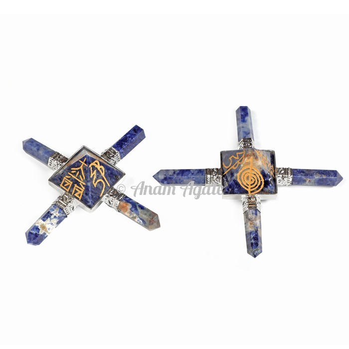 A beautiful hand made powerful 5 stone Sodalite Usui reiki Healing Generator at Affordable prices. The pyramid shape is a supernatural source of power and energy,amplify and balance energy through their apex. Everything within the electromagnetic field of a pyramid is believed to move towards harmony. The center has a 4-sided pyramid point crystal quartz stone used for collecting energy or dispersing energy. Shop online at Anam Agate. For Any Customuization you can contact us directly.