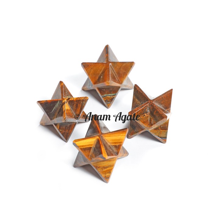 Explore the collection of Tiger Eye Merkaba Star at lowest price.This star has a very powerful vibration that draws spiritual energies to Earth, and is said to hold the sun`s energies inside of it.A fantastic grounding stone, this also helps low self-esteem and blocked creativity.This crystal assists in attaining goals and focusing the mind, building endurance and patience, ultimately enhancing your personal power.