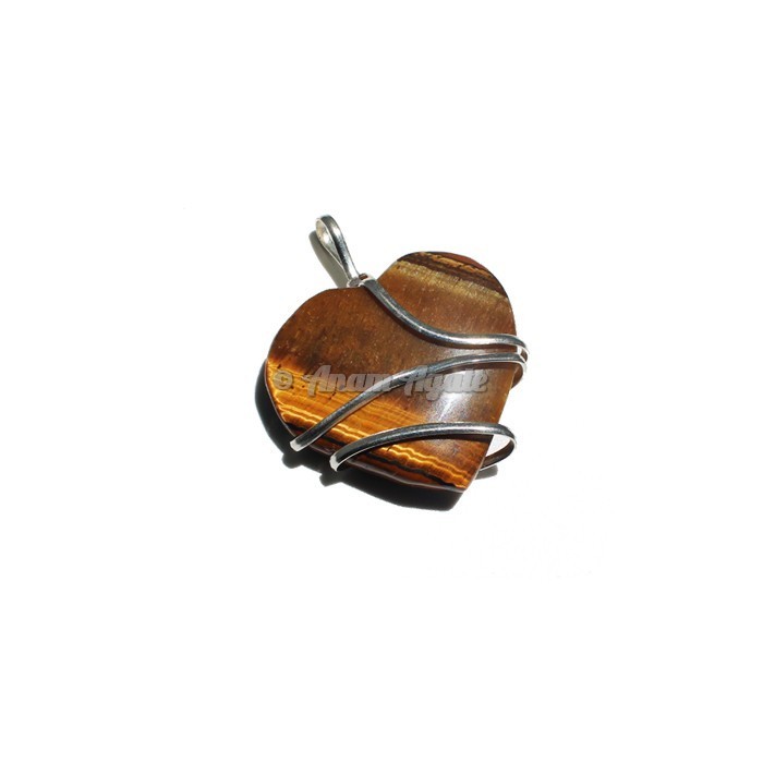 Tiger Eye Wire Wrapped Heart Pendant. Buy now high quality wire wrapped crystals, wire wrapped necklace and pendants at best rates