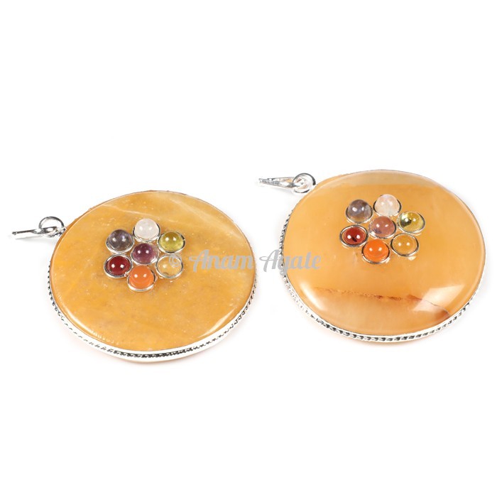 Anam Agate offers the best collection of Yellow Quartz Chakra Disc Pendants. It is related to the solar plexus chakra.Yellow Quartz is the most powerful healer. It amplifies energy and brings positive vibes to the wearer. It acts as a master healer and breaks the negative barriers of the body.Yellow Quartz is a great energy saver.It is used in meditation to filter out distractions. Request online at the earliest opportunity and Get the best and amazing pendant available in bulk quantity at Anam Agate.